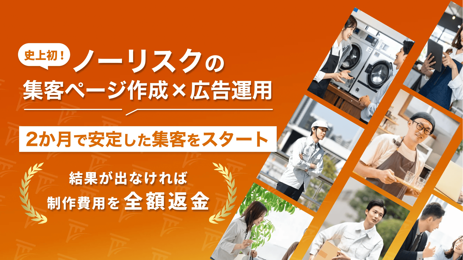 LP制作と広告運用をあわせてご支援するパッケージサービスです。制作したLPを使用し、広告の成果が黒字にならなければ、LPの制作費用は全額返金しており、完全にノーリスクで2か月で安定した集客をスタートできます。
